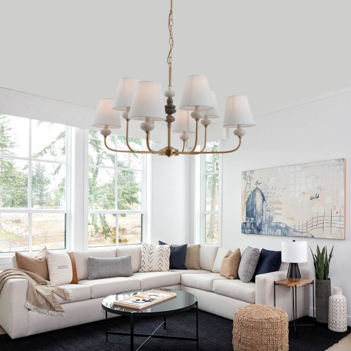 Đèn chùm đồng thau 8 đèn cổ điển bằng gốm sứ mới nhất, được ra mắt bởi Strong Lighting, một nhà máy có 10 năm kinh nghiệm trong lĩnh vực chiếu sáng trong nhà từ Trung Sơn, Trung Quốc. Phần cứng bằng đồng hợp thời trang nhất năm 2024, phù hợp với đồ trang trí bằng gốm màu trắng ấm, xám đậm và hồng. Nhà thiết kế của Strong Lighting đã lắp đặt hai kích thước cánh tay kim loại, tạo cảm giác lệch lạc và phân cấp trong cấu trúc của đèn. Đèn chùm đồng thau 8 đèn cổ điển bằng gốm là kiểu đèn chùm kiểu Mỹ hoặc Anh rất cổ điển. Dòng sản phẩm tương tự còn bao gồm đèn tường và đèn chùm 6 đèn. CE,VDE,UL được liệt kê.
