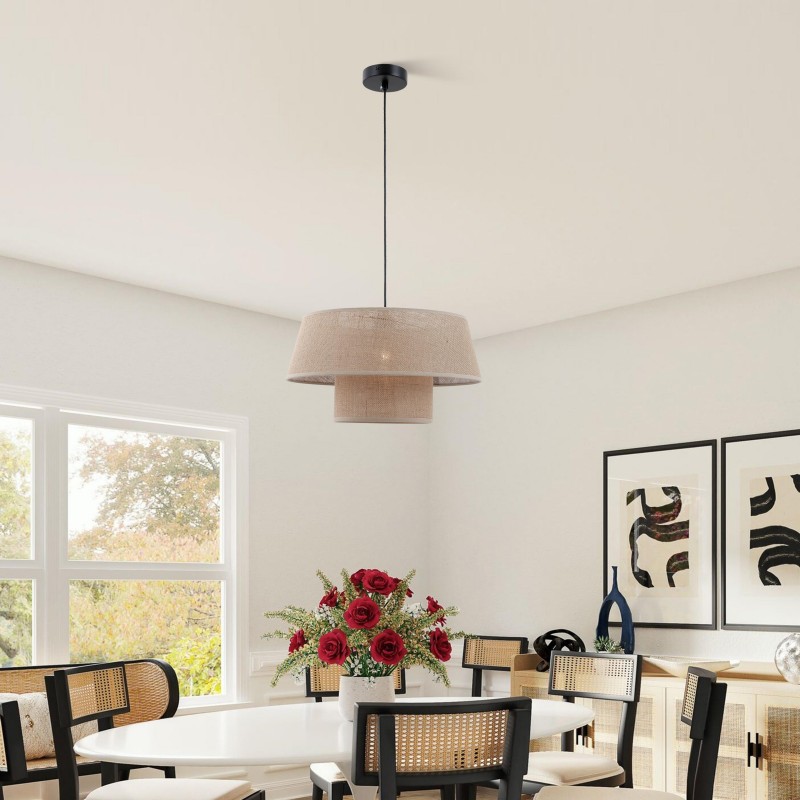 Được nhà sản xuất Trung Quốc Strong Lighting giới thiệu gần đây, Đèn treo nhà bếp bằng sợi gai dầu hai tầng mang đến cảm giác cổ điển và ấm cúng cho trang trí nội thất. Dây màu đen linh hoạt có chiều dài 1M cho phép điều chỉnh độ cao của đèn một cách tự do và sử dụng làm đèn treo hoặc thiết bị chiếu sáng bán tuôn ra. Bạn có thể treo nó phía trên bàn ăn, đặt ở góc phòng khách hay thậm chí treo trong phòng ngủ. Nó không phải là một sản phẩm chức năng mà là một phần trang trí trong ngôi nhà của bạn. Đèn treo nhà bếp bằng sợi gai dầu hai tầng có hai kích thước khác nhau, một kích thước khác nhỏ hơn có đường kính 300MM.